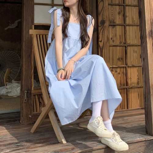 슈팅스타 / 빠른출고 리본 스트랩 심플 스퀘어넥 뷔스티에 원피스 951640