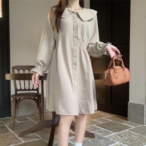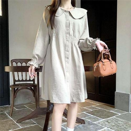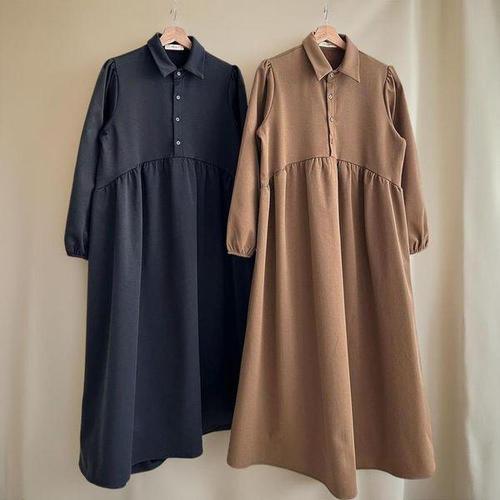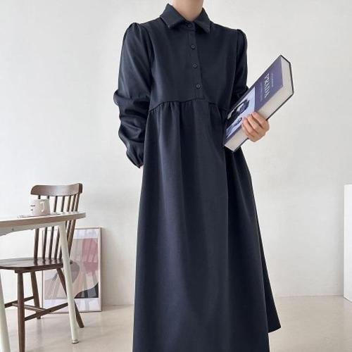 [신상오픈런]여자 기모 심플하객룩 카라넥 버튼 박시핏 롱원피스