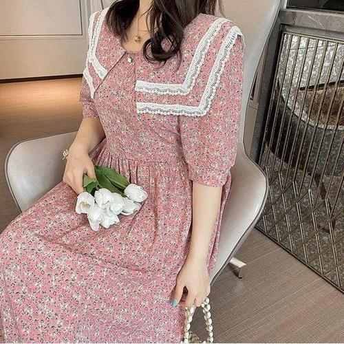 일본 스타일 2024 봄 여름 면 마 박시 오버사이즈 여성복 한국판 허리 조임 날씬해 보이는 라운드 원피스