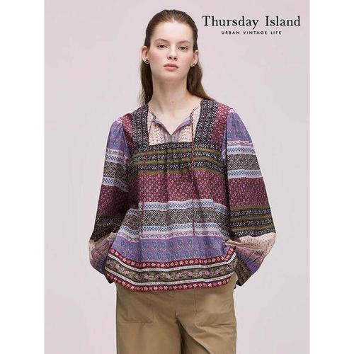 [써스데이아일랜드]라운드넥 보더 블라우스(T242MBL137W)
