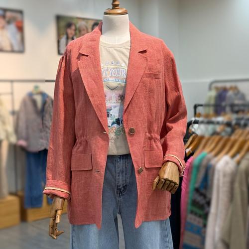 [써스데이아일랜드](T256MJK135W)체크패턴 린넨 투버튼 자켓