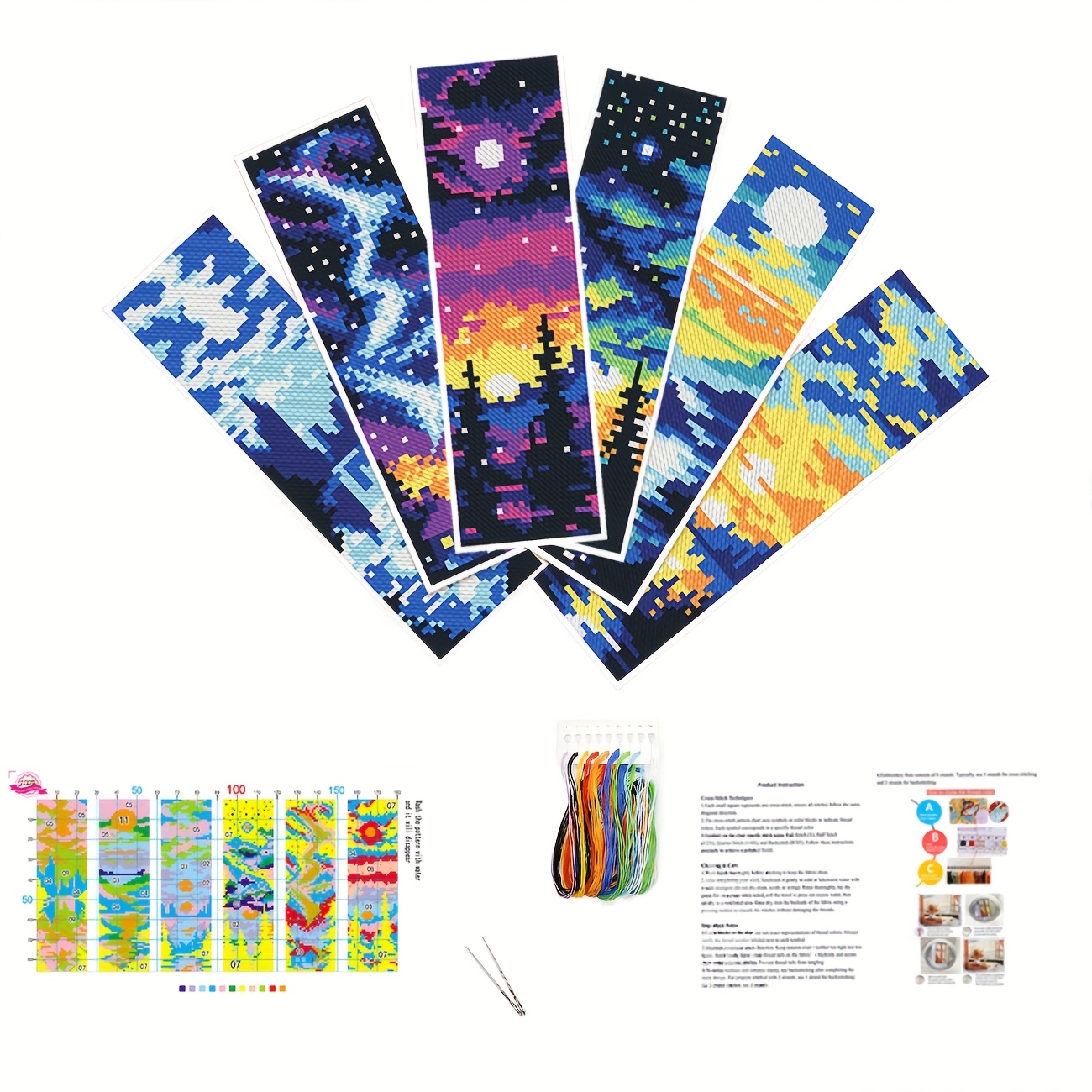 TEMU 초보자를 위한 핫 DIY 크로스 스티치 북마크 키트·선택할 수 있는 3가지 테마: 사계절/그림 스롤/판타지 여행/시간 풍경 · 초보자용 자수 세트 + 비디오 튜토리얼 포함·완전한 도구 및 실 포함·창의적인 선물 홈 공예