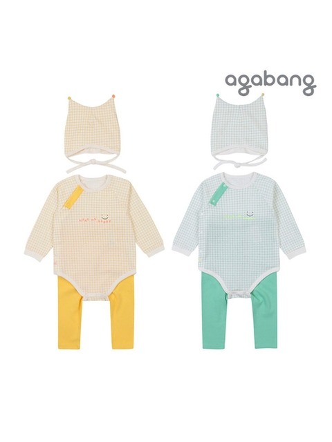 [아가방] [가을] [아가방]스마일 바디수트상하(모자) (GREEN YELLOW)_01P117504
