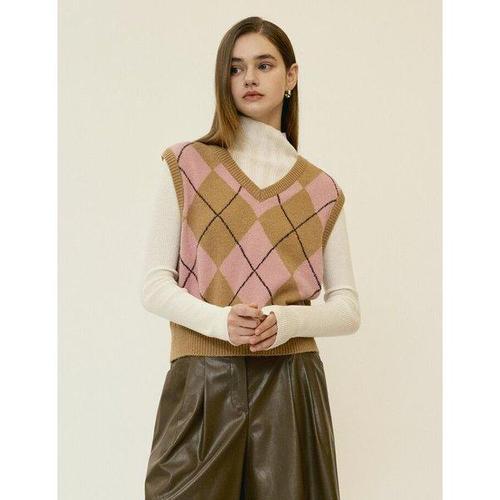 [커스텀에이블] 아가일 V넥 니트조끼_T2512KV018D