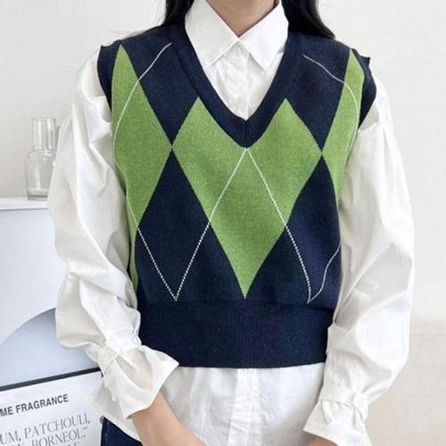 [에이치플러스몰]여자 인기 여성 아가일 패턴 감성 조끼 니트 포인트