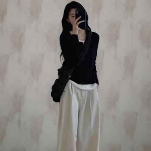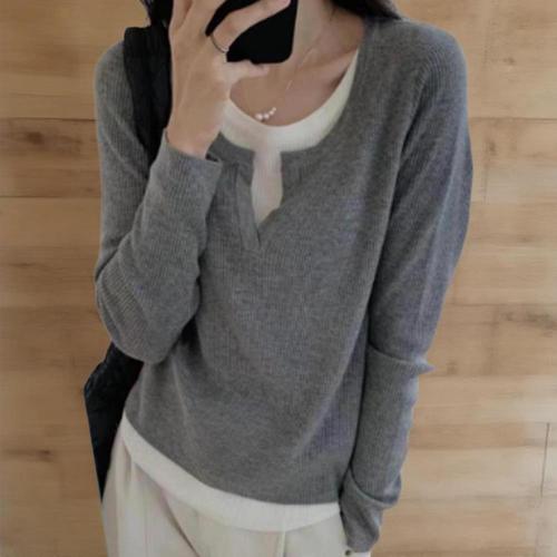 TEMU 가을/겨울 시즌, 사계절용 솔리드 컬러 V넥 긴팔 티셔츠 세트