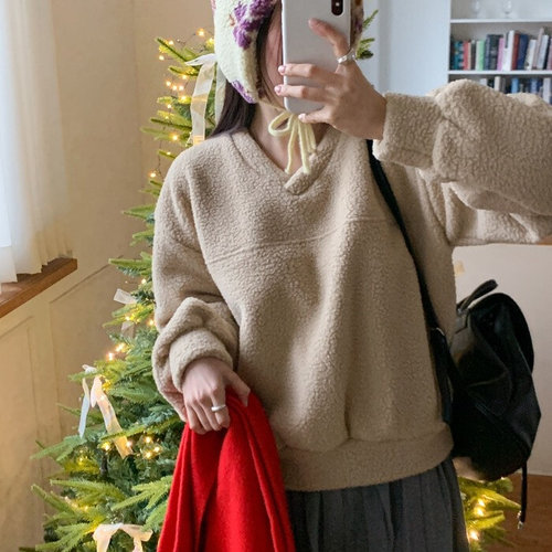 플러리싱 / 테디 뽀글이 브이넥 절개 맨투맨 플러리싱