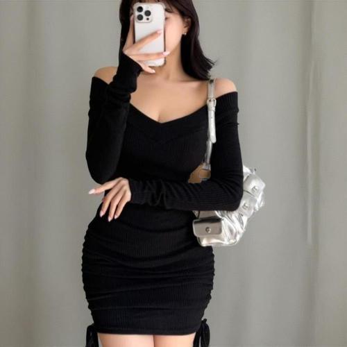 [미라클세븐]여성 브이넥 스트링 장식 미니 드레스 파티복