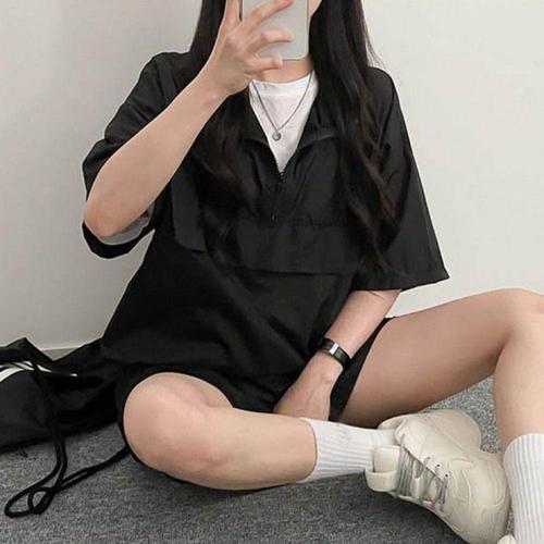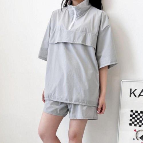 [옷자락]여자 아노락 오버핏 트레이닝 반팔 반바지 세트