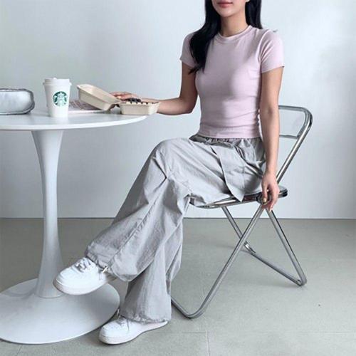끌로이 여성용 바스락 와이드 팬츠 밴딩 아노락 경량 스판 바지 트레이닝 운동복 데일리