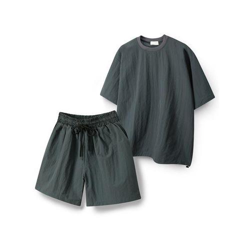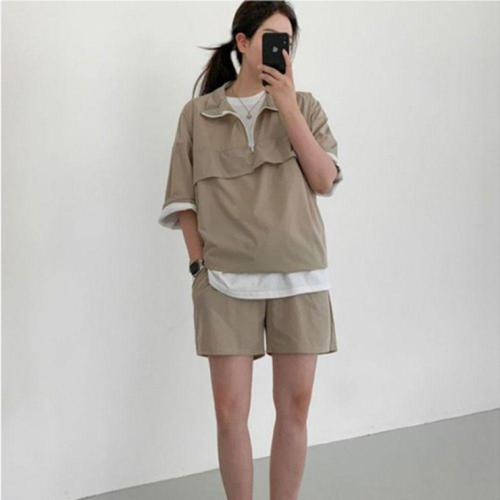 [옷자락]여자 아노락 오버핏 트레이닝 반팔 반바지 세트