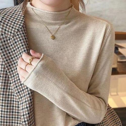 [셀럽하우스]오피스 IEYE6910 룩 인견 반 목 폴라 티셔츠 레이온 하프 넥 티