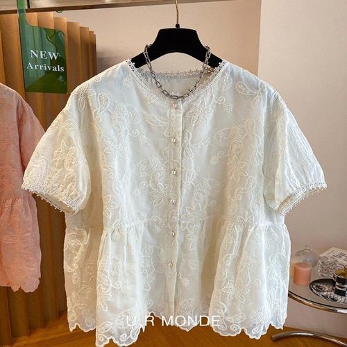 [유아몽드]플라워 진주단추 반팔 블라우스 빅사이즈 데이트룩 러