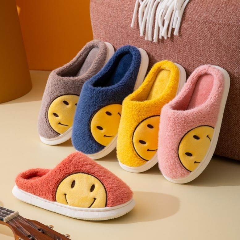 포근포근 스마일 커플 털 슬리퍼 따뜻한 거실화 겨울 실내화 3type