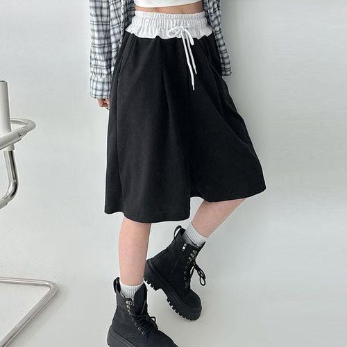 [유야]숏 롱 기장선택 배색 핀턱 밴딩 반바지 5부 버뮤다팬츠 -PN0605H- 여성 여름