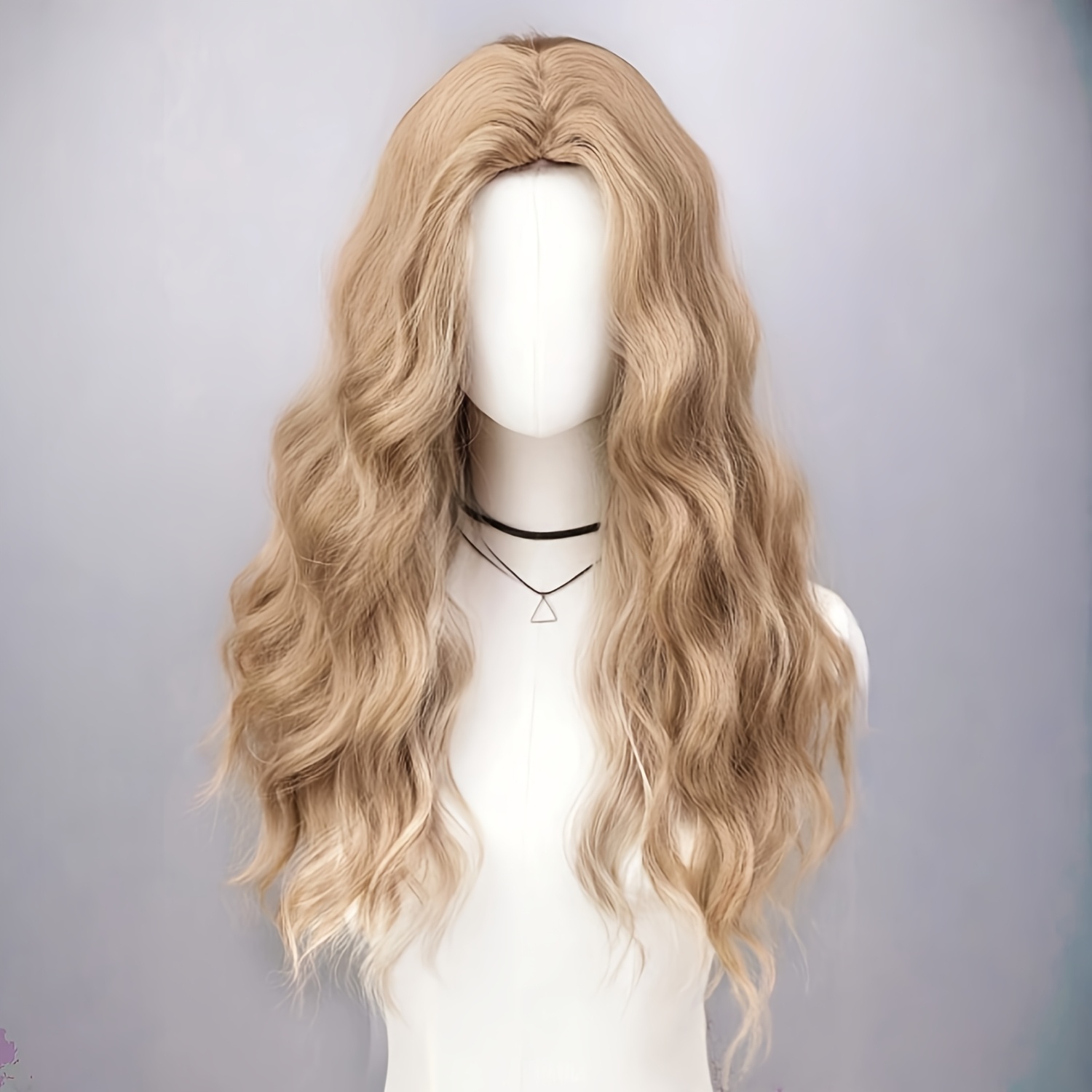 TEMU 22인치 중간 길이의 곱슬 금발 가발입니다. 고품질의 합성 소재로 제작되었으며 자연스러운 느낌을 주고 있습니다. 여성에게 완벽하며, 일상, 생일, 공연 및 할로윈, 크리스마스와 같은 특별한 날에 이상적입니다.