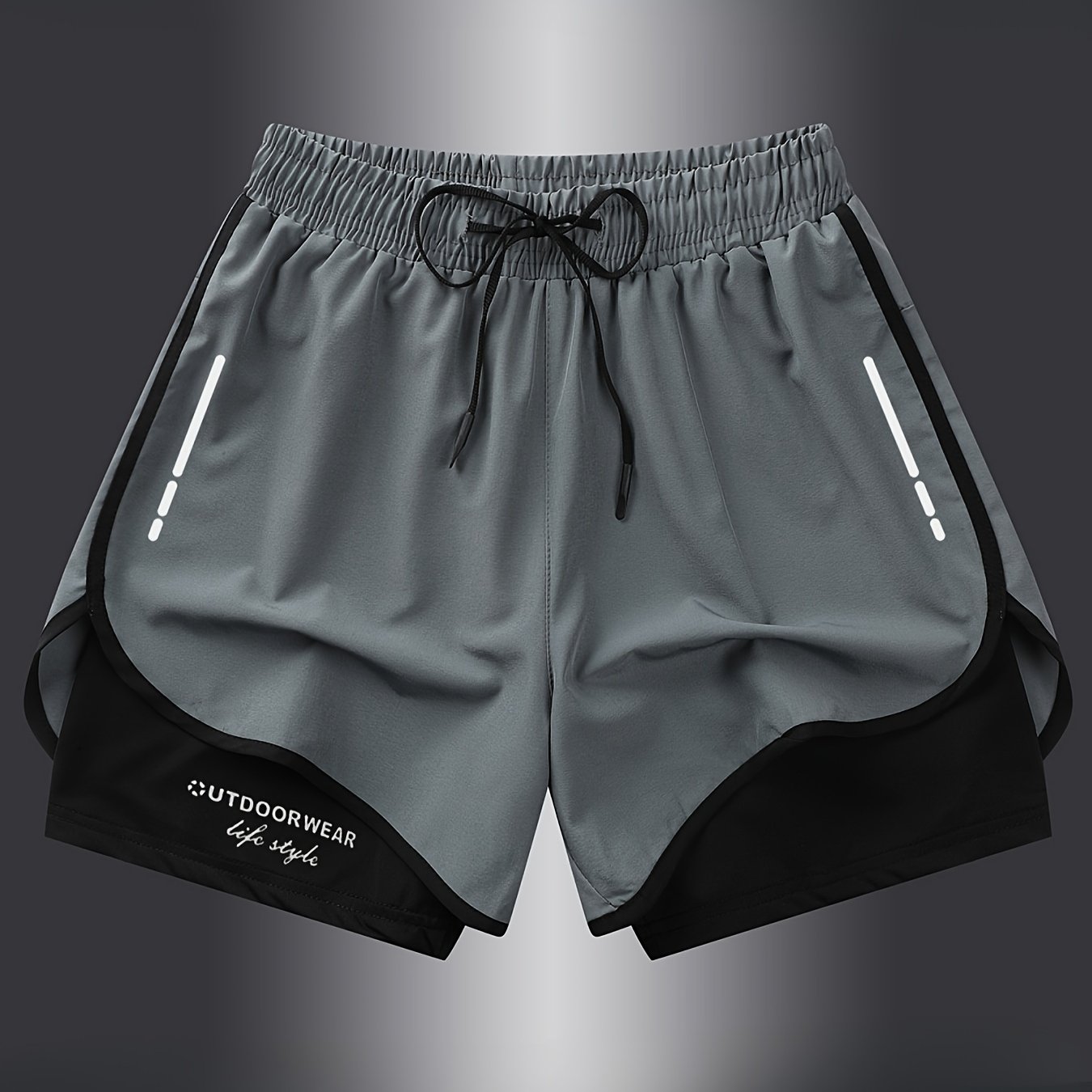 남성용 더블 레이어 운동용 반바지 속이 있는 빠른 건조 수영 반바지는 끈이 달린 통기성 스포츠 비치 러닝 팬츠입니다.