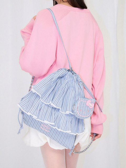 [아떼 바네사브루노 백] [Hello Kitty x athe] 프릴체인 블루 스트라이프 백팩 겸 숄더백 S AABA6E033B2