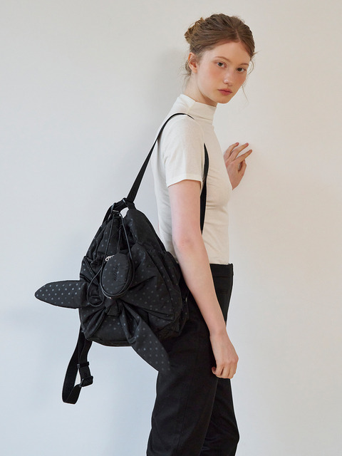 [아떼 바네사브루노 백] [RUBAN] 도트 블랙 리본 백팩 겸 숄더백 S AABA6E912BK