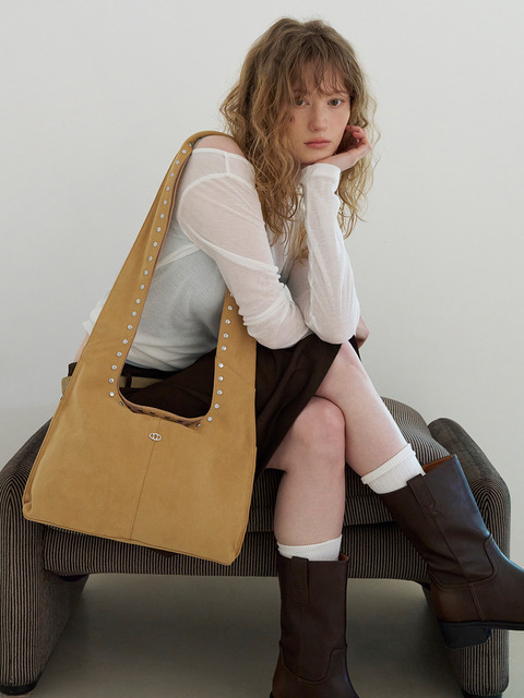 [아떼 바네사브루노 백] [MARON SOFT] 베이지 스웨이드 패브릭 스터드 숄더백 M AABA6E471W1