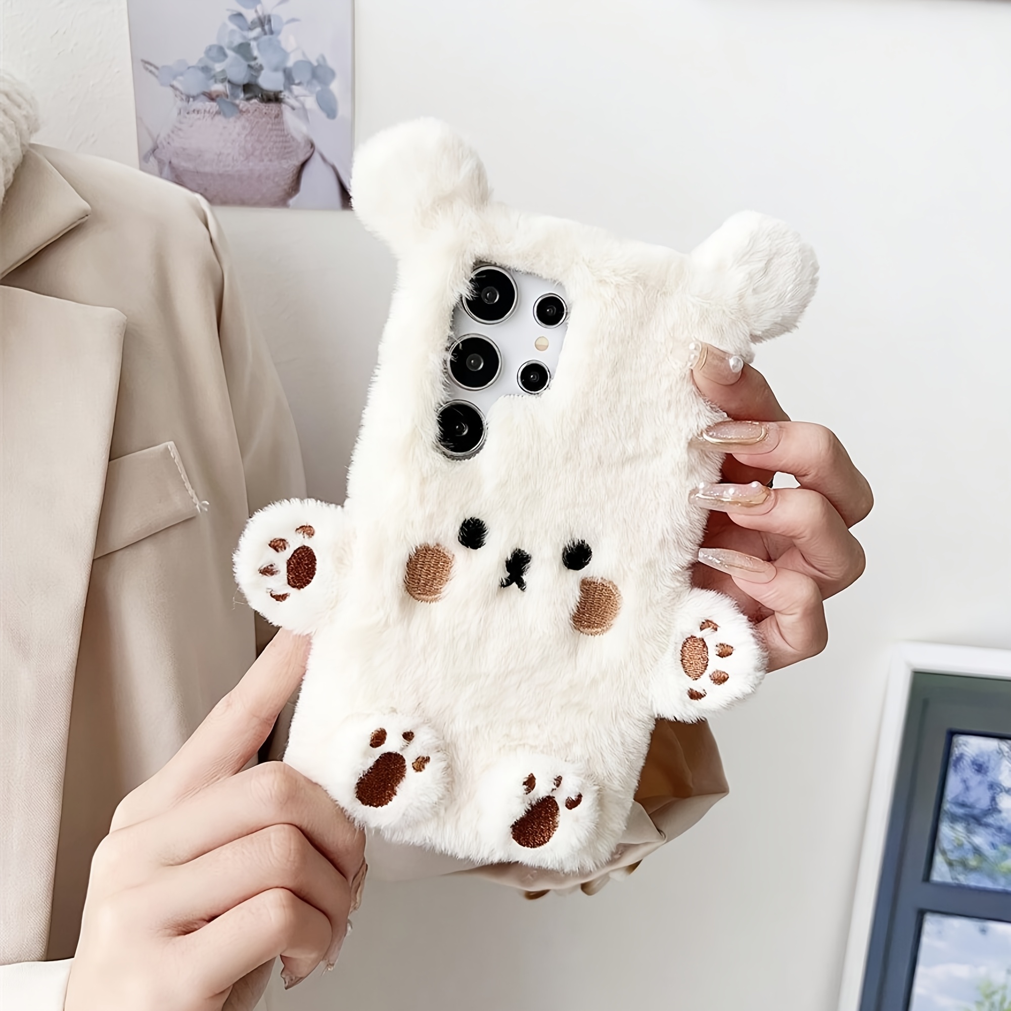 TEMU 3D 쌀색 곰 인형 휴대폰 케이스, S22 S23 S24 S25에 적합한 가을/겨울용 따뜻한 커플 귀여운 모바일 폰 케이스