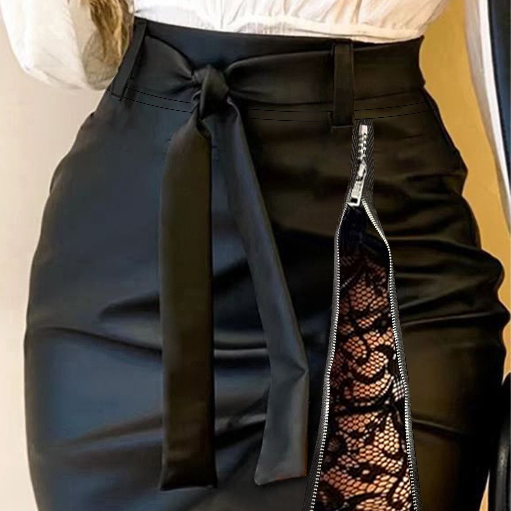 TEMU 레이스 지퍼 미니 스커트, 섹시한 벨트 바디콘 스커트, 봄 & 여름용 여성 의류
