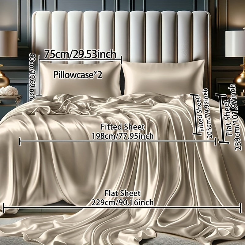 TEMU 4피스 럭셔리 새틴 침구 세트 (1매트리스 커버 + 1시트 + 2베개커버, 베개 미포함) - 부드럽고 깊은 포켓 디자인, 사계절 편안함, 가정, 침실, 호텔, 기숙사용