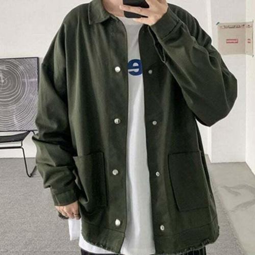 남성용 오버핏 스냅 버튼 트러커 자켓