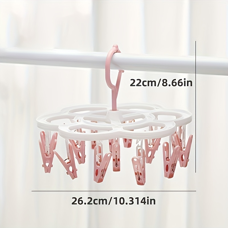 TEMU 360° 회전 후크, 내구성 플라스틱 디자인 - 양말, 브라 및 속옷 건조용 다방향 공간 절약형 빨래 걸이, 강력한 그립 옷핀 포함 드라이어랙