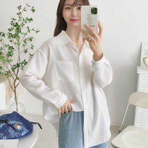 여성 여름 셔츠 아사면 블라우스 얇은 긴팔 거즈 남방 시어서커셔츠