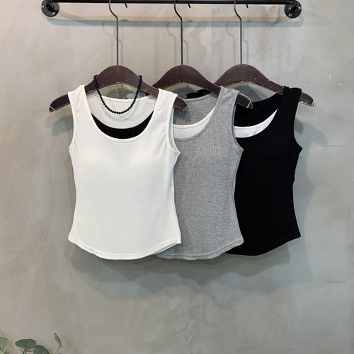 씨샵인더룸 / (신상 무료배송)1 + 1 이오 캡내장 레이어드 골지 나시 티셔츠 3color