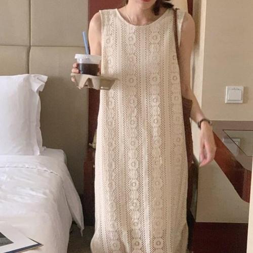 [에이치플러스몰]여성 아이보리 레이스 롱 원피스 민소매 여름옷