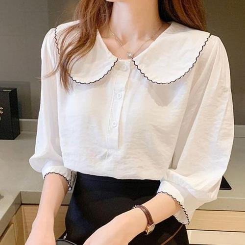 지고다그 여성용 봄 시즌 레이스 블라우스 퍼프소매 로맨틱 무드 상체커버 상의 YZH73064