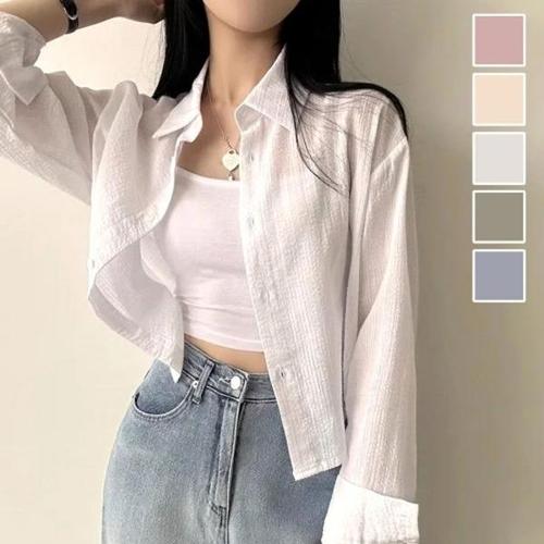 [엄지척]여름 여성 시원한 반크롭 아이스 긴팔 블라우스 셔츠_19651732_667501