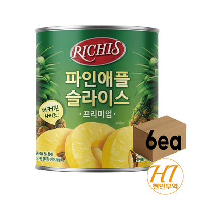 동서 리치스 파인애플슬라이스 통조림캔 프리미엄 3kg,6개/업소용 대용량