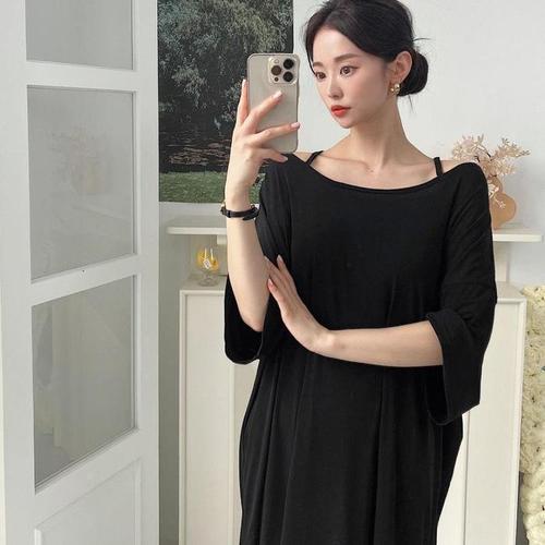 여자 여름 시원한 편한 얇은 아이스 골지 미디 원피스