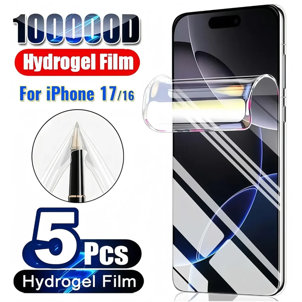 NNBILI 5개입 하이드로겔 필름 풀커버 스크린 보호필름 아이폰 11 12 13 14 15 16 17 프로 맥스 미니 17Air 16e 14 15 플러스 (유리 아님)