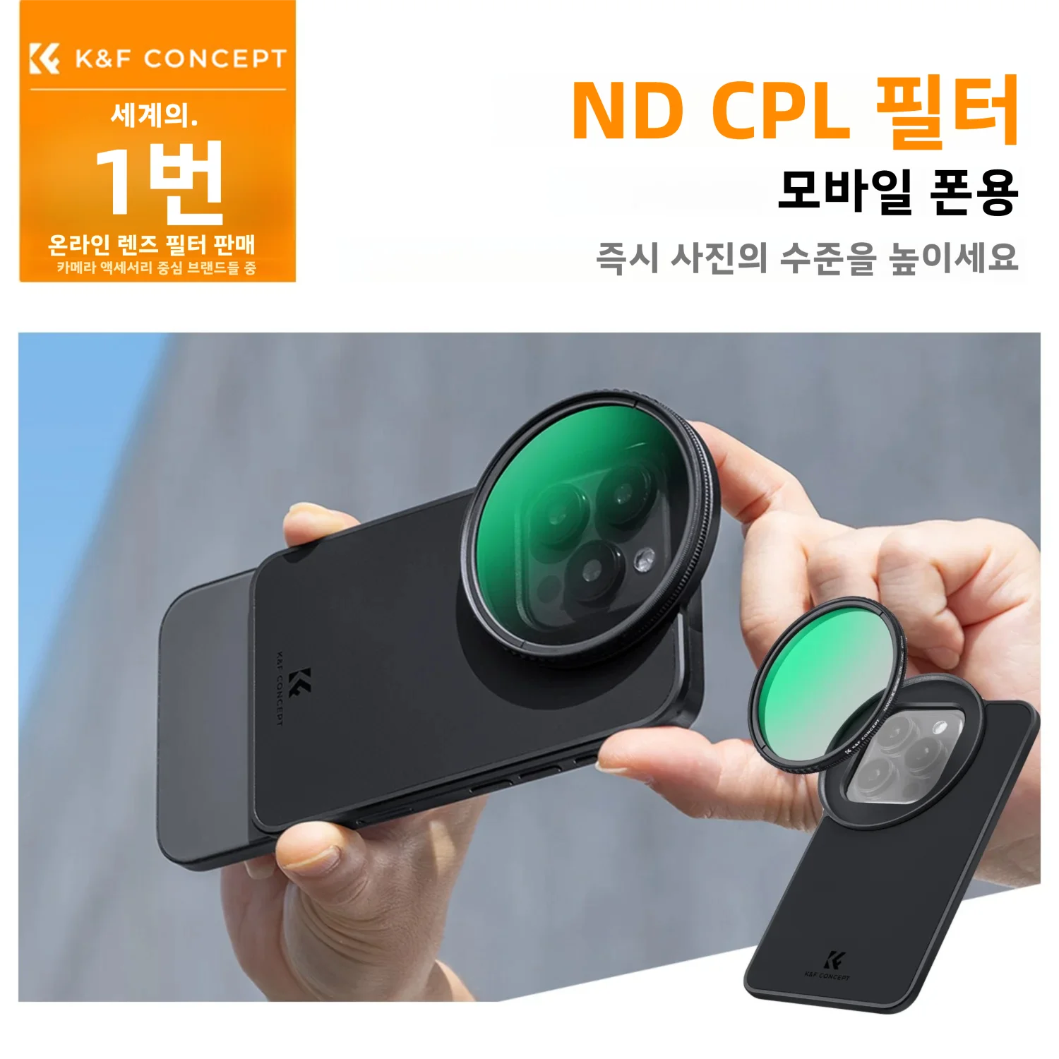 K&F CONCEPT 6.7인치 마그네틱 렌즈 필터 어댑터 67mm CPL 편광 필터 또는 가변 ND2-32 필터 아이폰 16 15 프로 맥스 플러스용