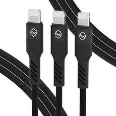신지모루 로프 아이폰 고속충전 케이블 3개, 2m, 블랙