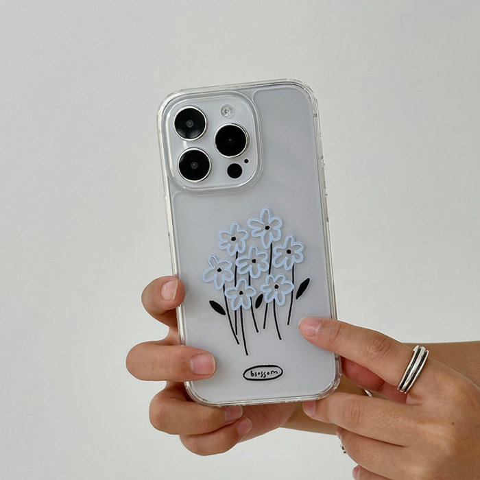 케꾸 케꾸 자체제작 아이폰 갤럭시 블라썸 블루 플라워 투명 젤하드 폰케이스
