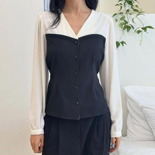 [아이우먼]튤립브이배색블라우스 YPQ539M602 빅사이즈