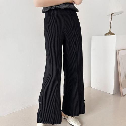[다잇템]여자 검정 나팔 넓은 아코디언 단추 폭신 바지 (45895217)