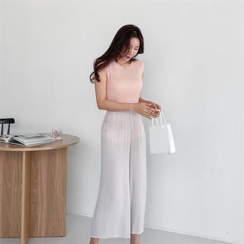 [다잇템]여자 아코디언 칠부 SS 쿨링 와이드핏 바지 (7619441A)