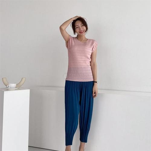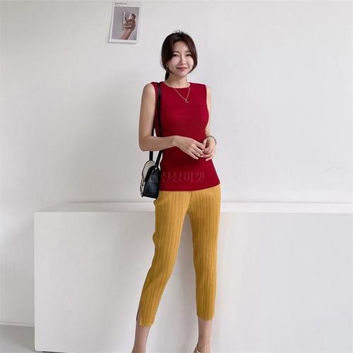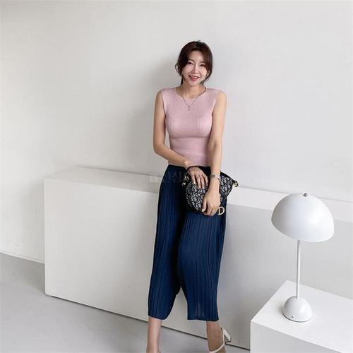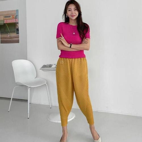[다잇템]여자 플리츠 클래식 아코디언 이지 칠부 팬츠 (7619613B)