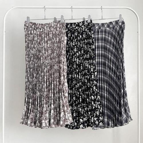 [다잇템][다잇템] 여성 콘트라스트 꽃무늬 고무줄 아코디언 롱스커트_22815861_588872
