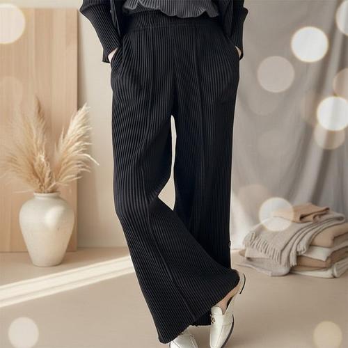 여성용 플리츠 아코디언 와이드 긴바지