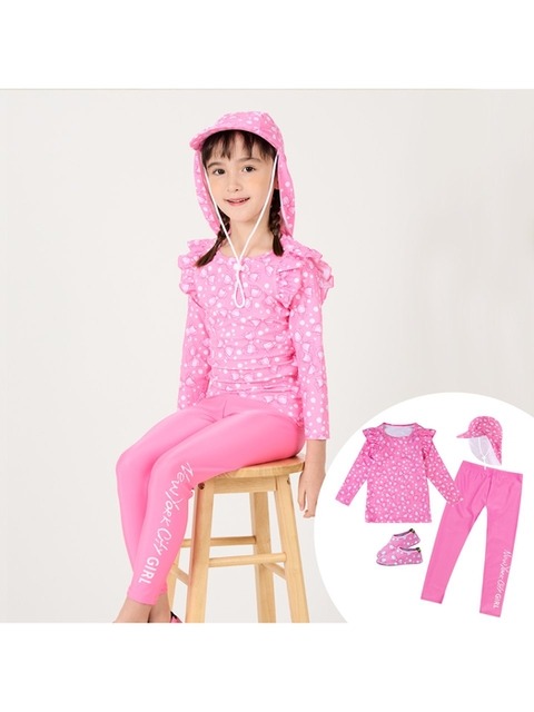 [아이스샌드] 아이스샌드 키즈 아동 여아 래쉬가드+플랩캡+아쿠아슈즈 4피스 수영복세트 BR-92009K