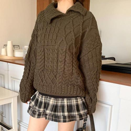 [옷자락]여성 겨울 두툼 아크릴 꽈배기 니트