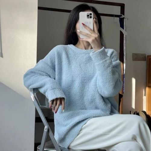 [엄지척]여성 2컬러 아크릴 보들 뽀글이 라운드넥 니트 스웨터_19805684_667501