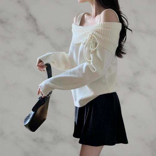 [옷자락] 여성 루즈핏 오프숄더 일상 아크릴 니트